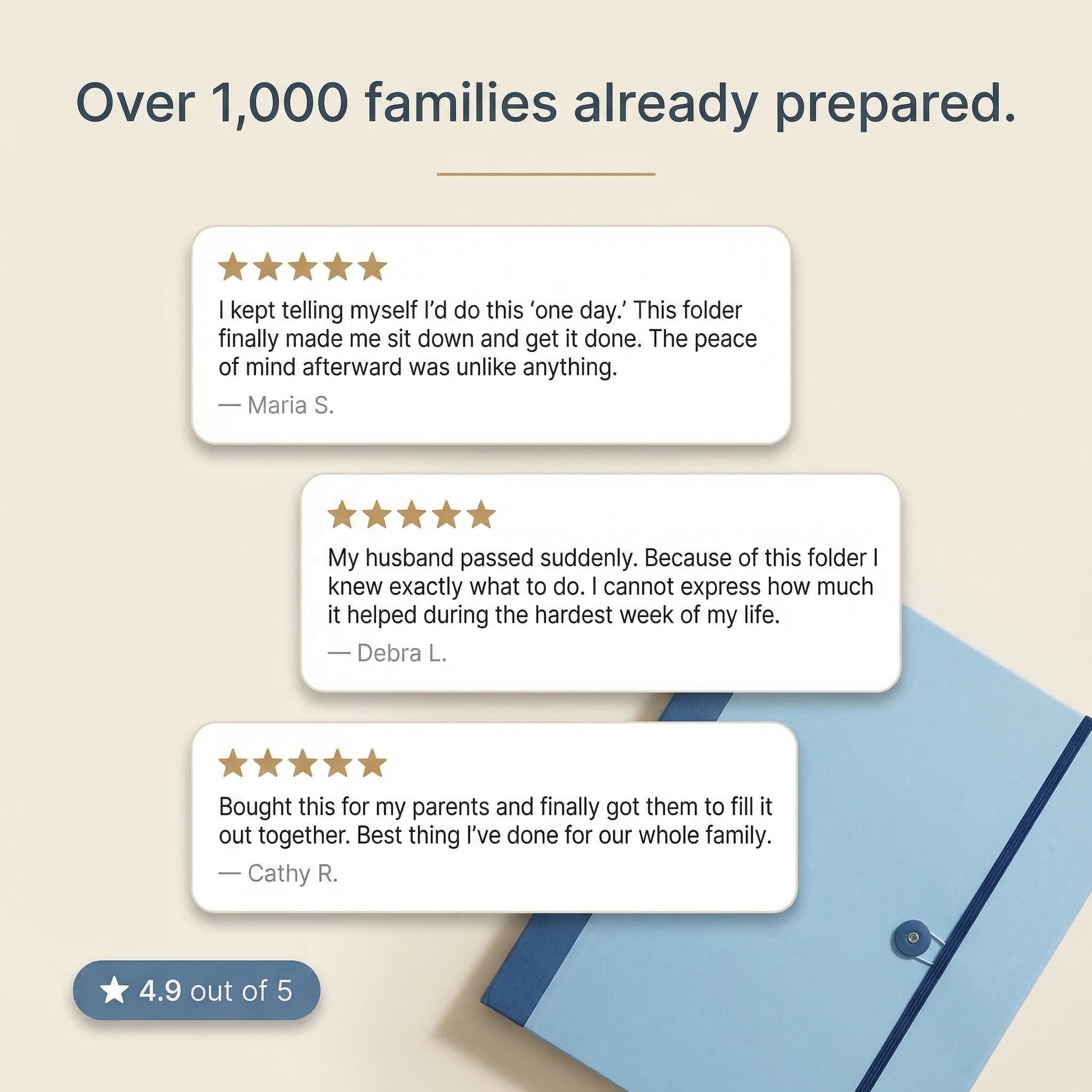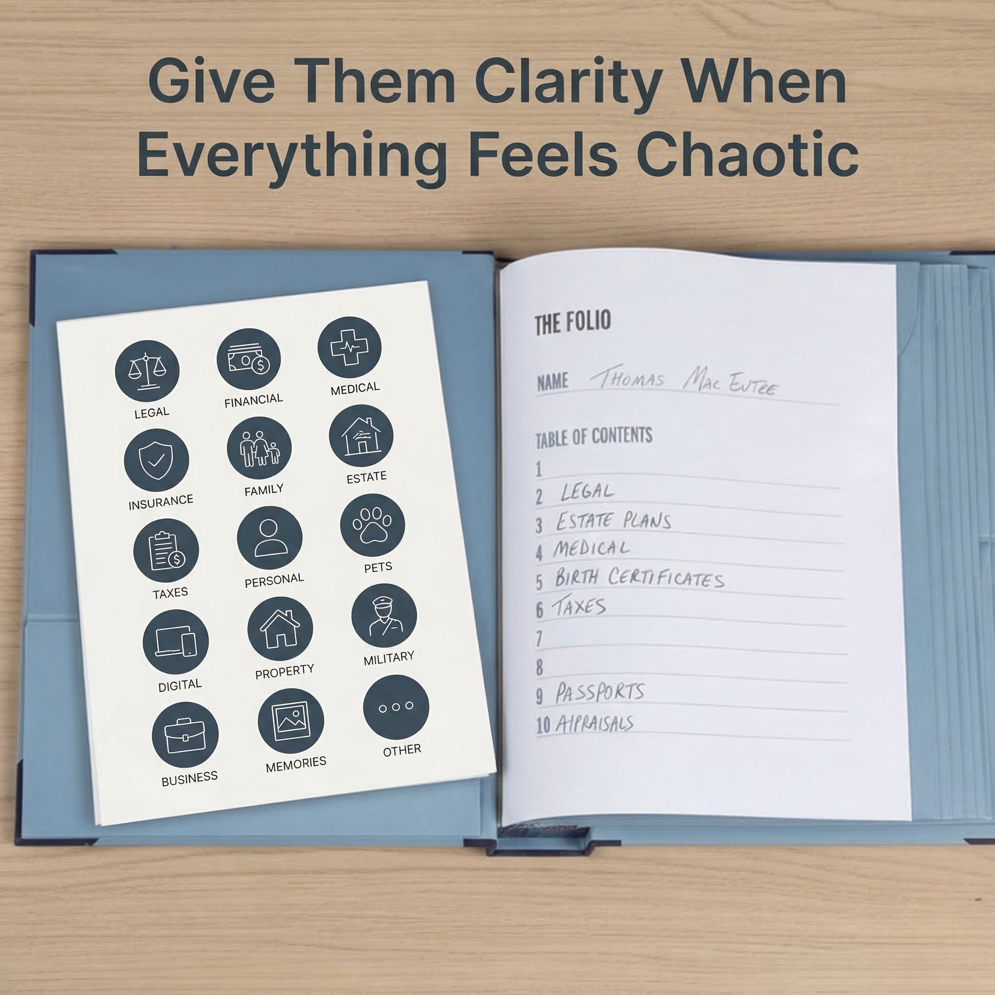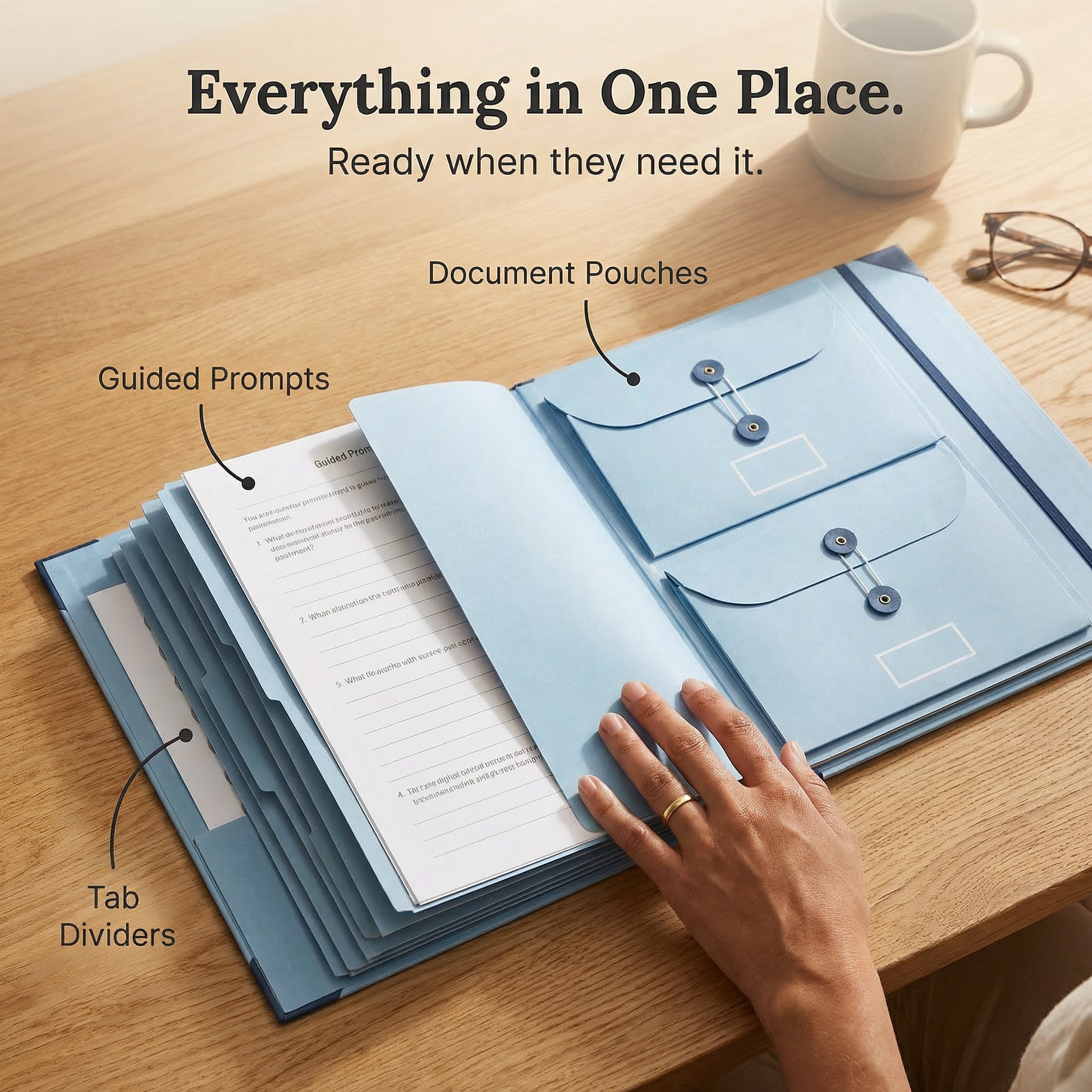 The Final Chapter Folder changes that. One place. Everything organized. Ready when they need it most.