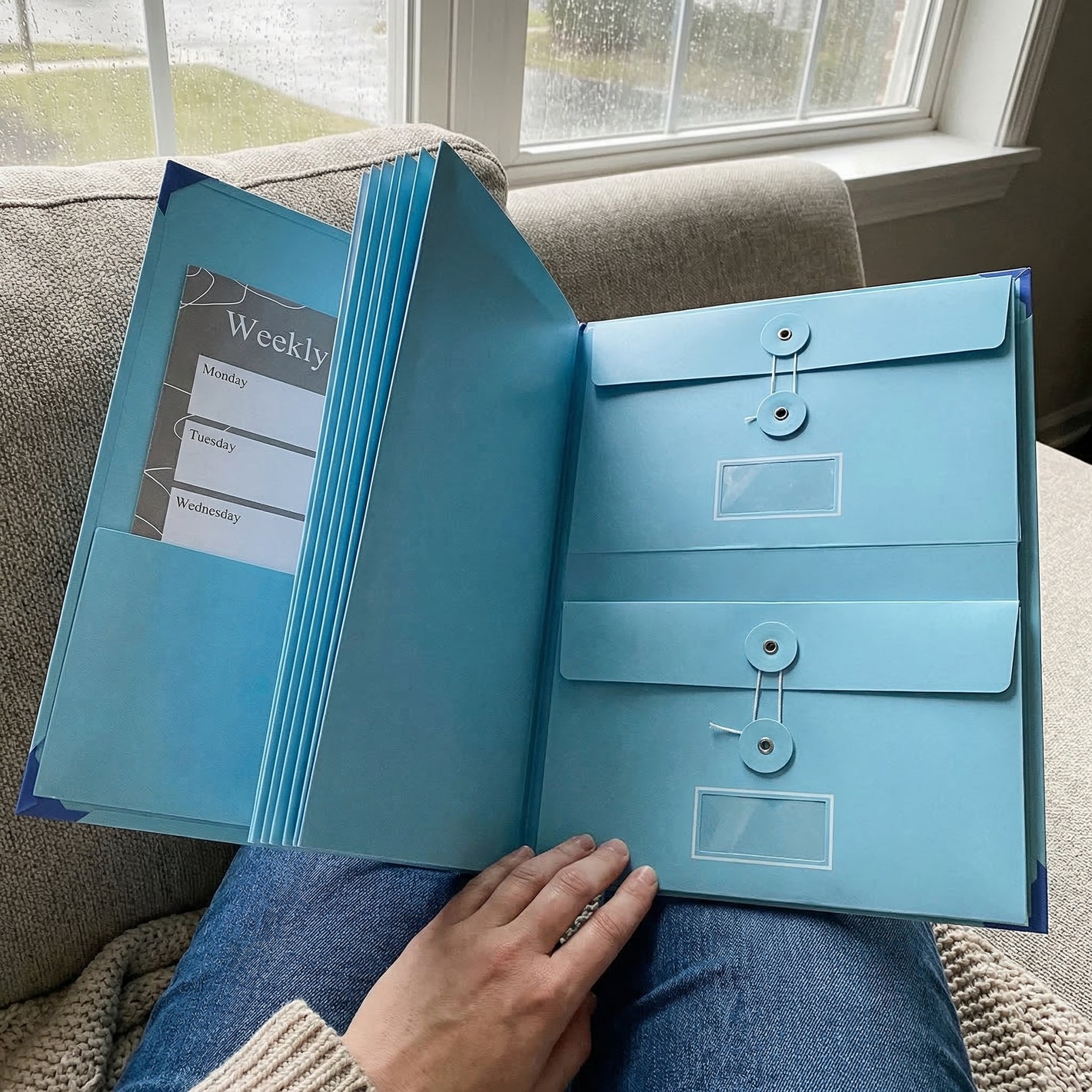 It looks like a folder. But it works like a complete system. Every section is pre-organized and labeled so you know exactly what to include. Tab dividers, envelope pouches, stickers, table of contents. The reason most people never finish organizing this information is because they don't know where to start. This folder removes that problem entirely.